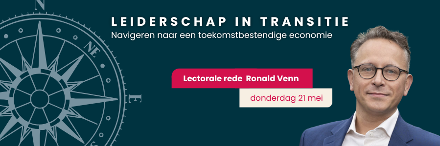 Op donderdag 21 mei houdt Ronald Venn zijn lectorale rede: Leiderschap in transitie. Op weg naar een toekomstbestendige economie. In zijn rede verbindt hij leiderschap in tijden van verandering aan de vraag hoe organisaties kunnen bijdragen aan een toekomstbestendige economie, met aandacht voor zowel strategische als menselijke vraagstukken. Meld je alvast aan!
