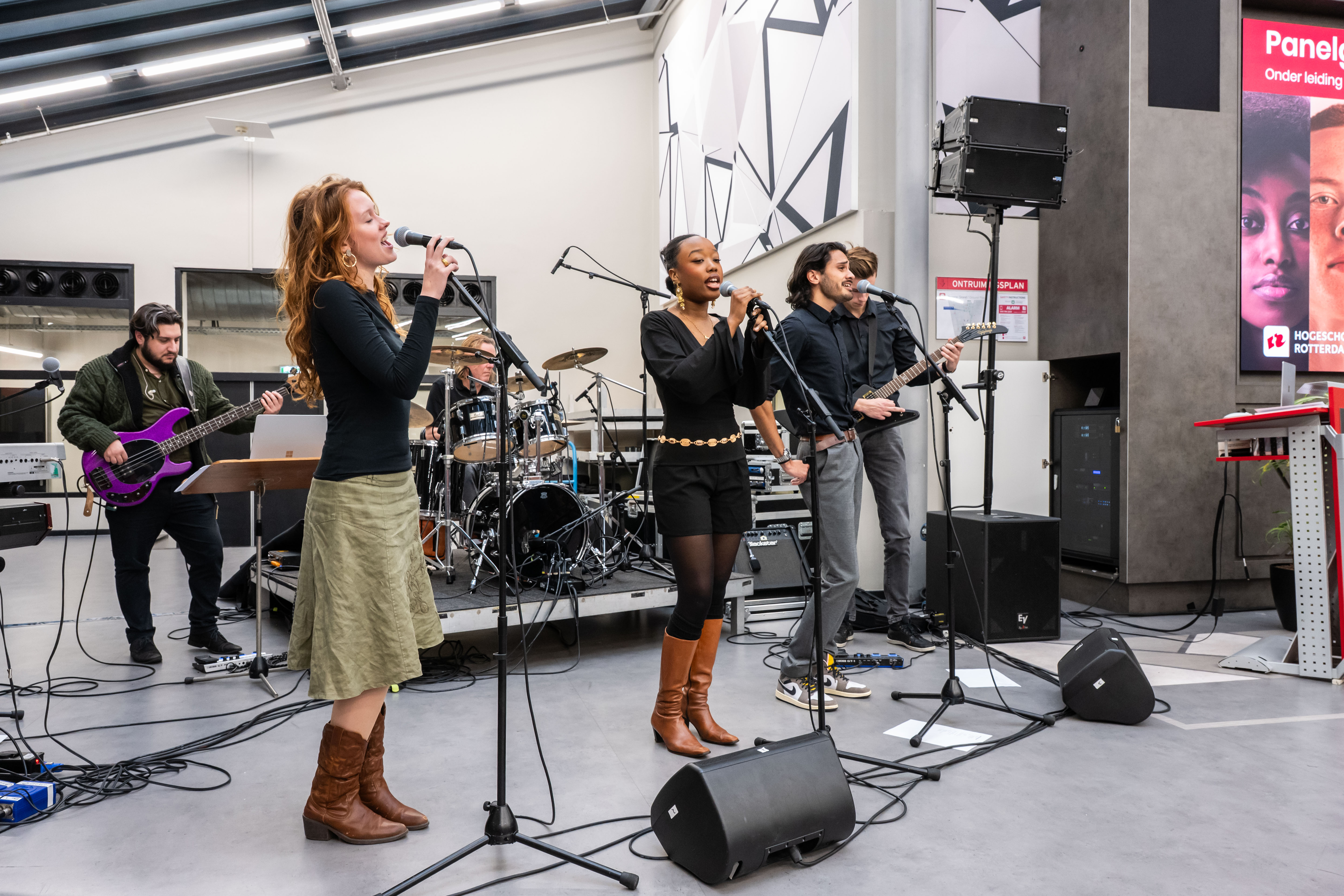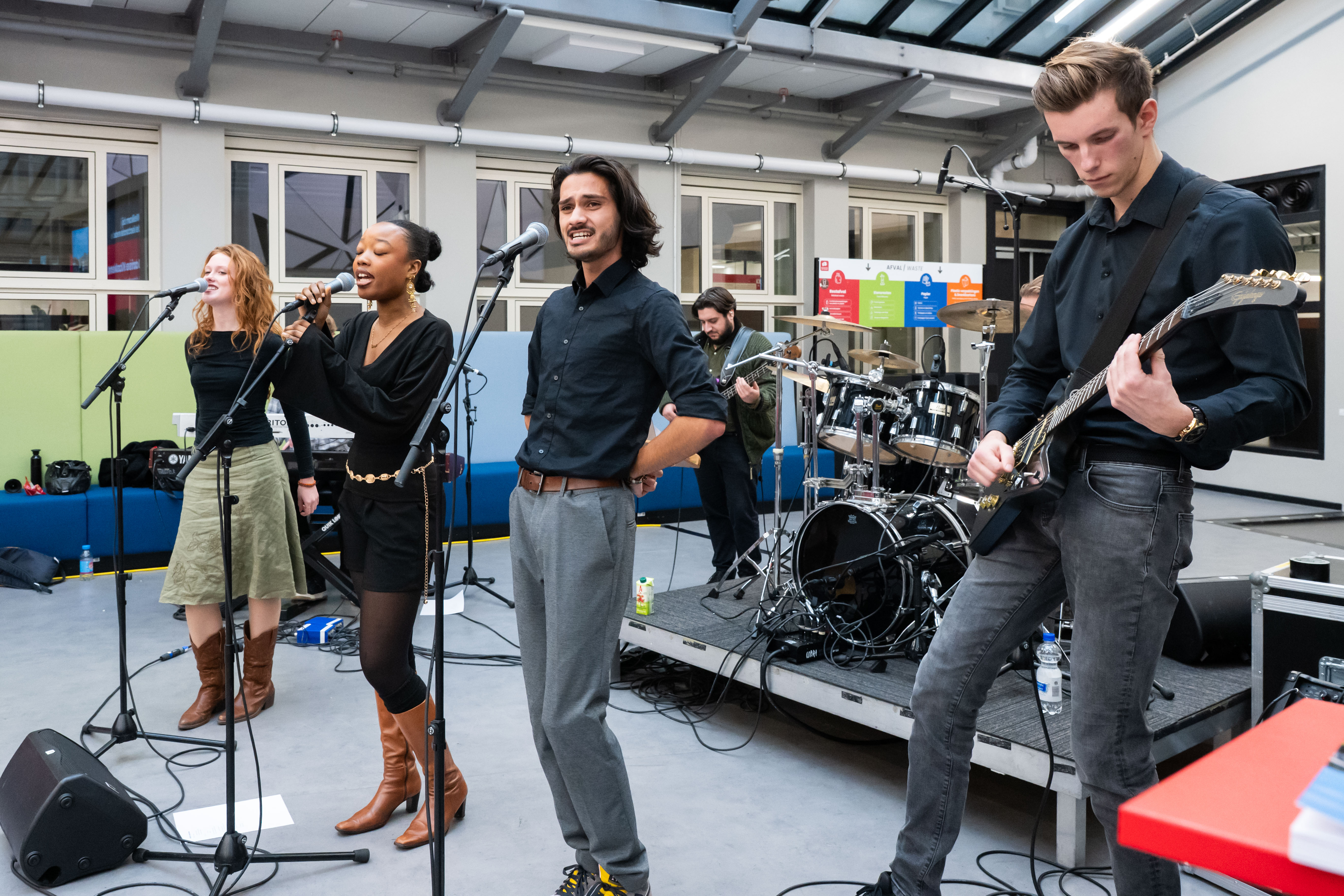De studentenband Keuzevak Band & Popmuziek verzorgde de muziek en zette een indrukwekkend optreden neer.