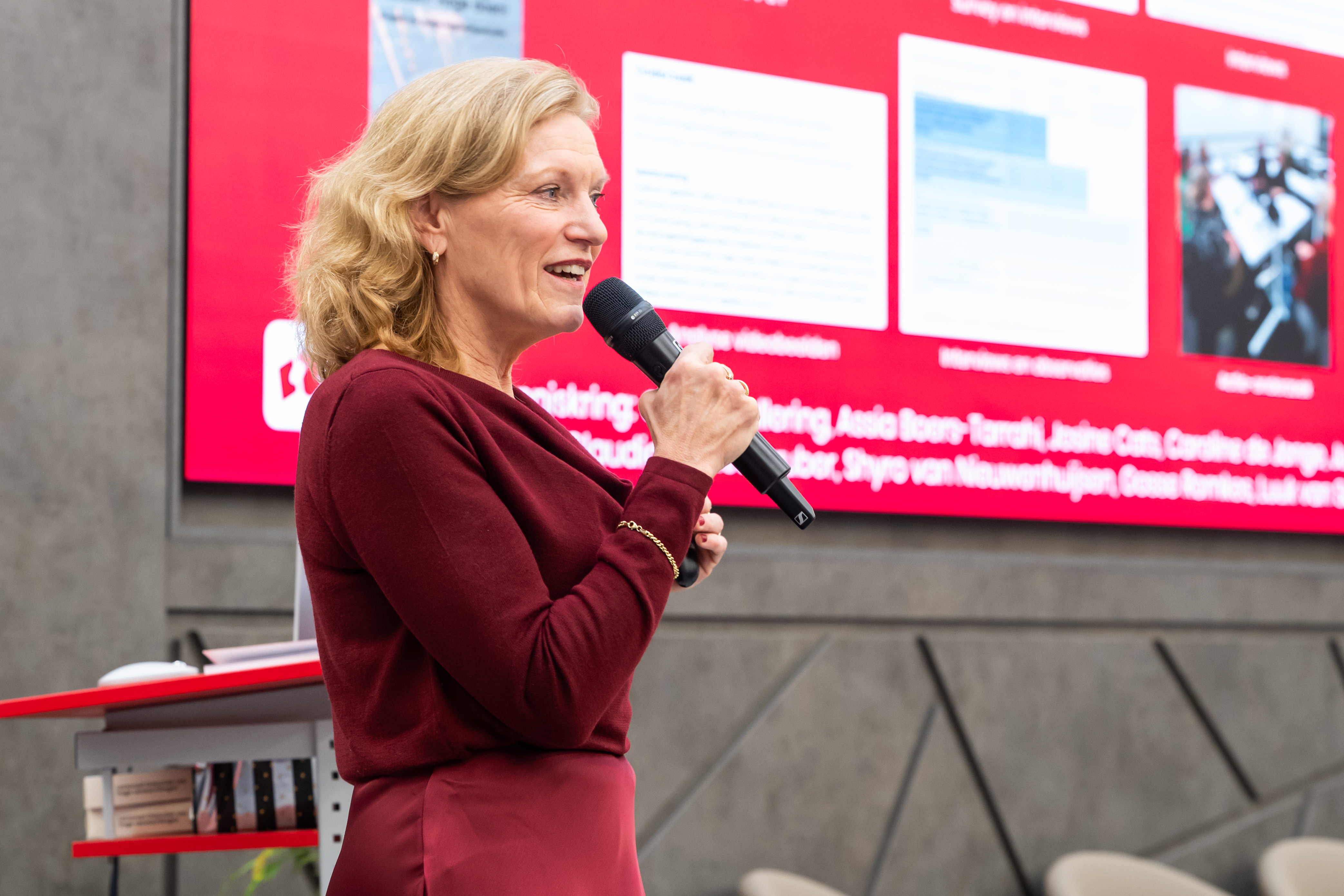 Tijdens de bijeenkomst werd Jarise Kaskens officieel geïnstalleerd als lector door Hanneke Reuling (lid van het College van Bestuur van Hogeschool Rotterdam). Hanneke benadrukte: “De accenten in jouw lectorale rede liggen duidelijk op het doen. Hoge verwachtingen gaan niet alleen over onderwijs en didactiek, maar ook over de cultuur die we samen bouwen. Ook wij binnen het CvB hebben onlangs een training gevolgd in leidinggevend coachen — precies om dat te versterken.”