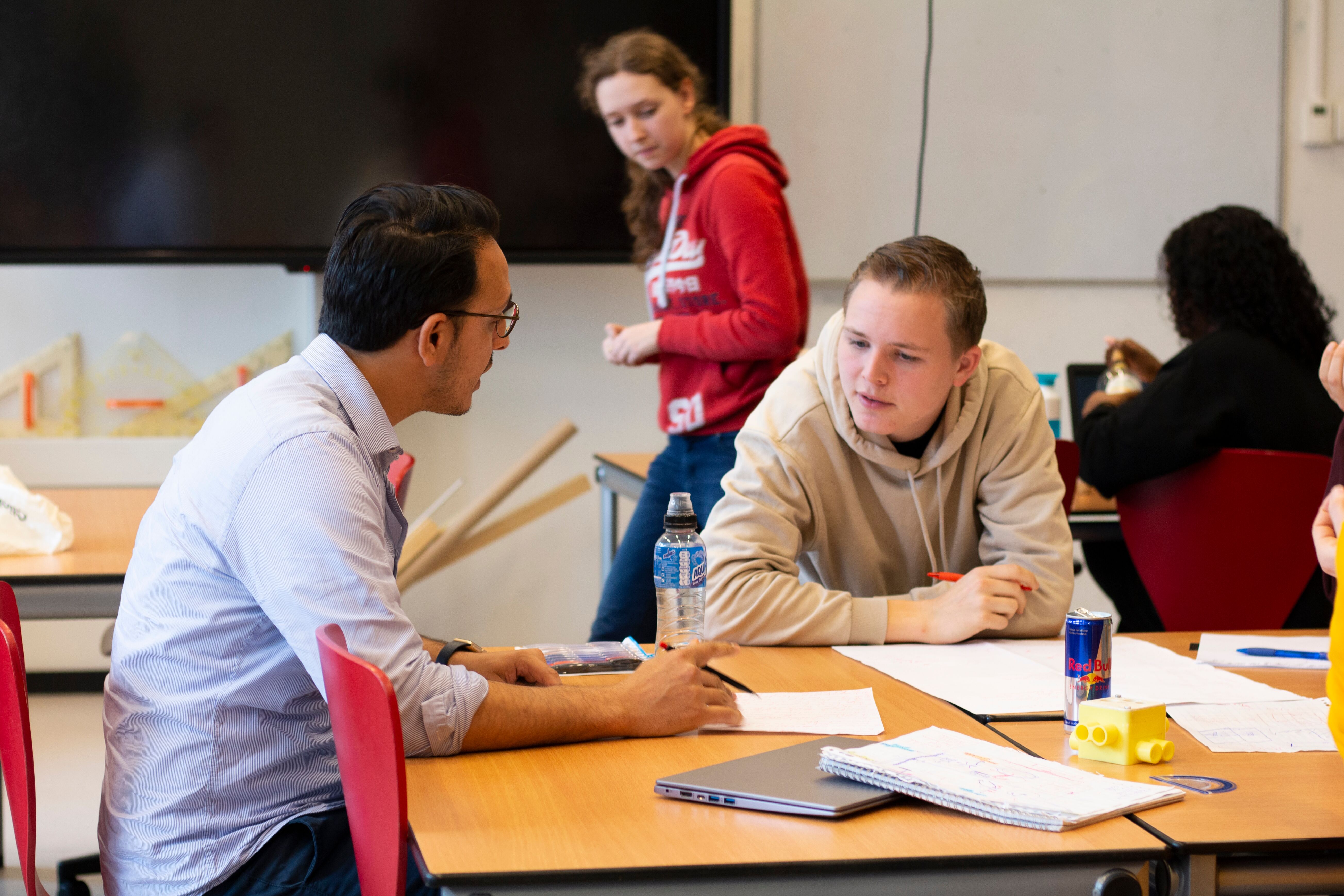 Lia Voerman en Carlos van Kan legden zelfs een deel van hun sollicitatie gezamenlijk af. “Zo hebben we elkaar al goed leren kennen vóórdat thuiswerken de norm werd”, vertelt Lia. “Daar hebben we nu profijt van.” Omdat ze in dezelfde opstartfase zitten, hebben Carlos en Lia elkaar regelmatig aan de lijn voor praktische zaken. “In deze fase kijken we vooral waar kansen liggen om samen te werken”, vertelt Carlos. “Vanuit de pedagogiek ben ik vooral bezig met de ‘waartoe’-vraag: waartoe dient onderwijs en wat wil je als docent aan leerlingen meegeven? Lia sluit daar vanuit de didactiek naadloos op aan: hoe krijg je dat voor elkaar? Maar soms moet je vanuit de didactiek juist terug naar de waartoe-vraag. Door het simultaan aan te pakken, leren we veel van elkaar.”