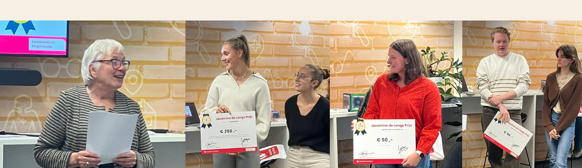 De hoofdprijs ging naar een groep masterstudenten Fysiotherapie: Jamilla Lamers, Fleur Kuyvenhoven, Dorenda Zwaard, Kim van Meurs, Kimberley Lobbis, Marciano Sloos en Patrick Havik. Zij werkten twee jaar lang aan een project om met behulp van kunstmatige intelligentie (AI) probleemgedrag bij mensen met dementie te voorspellen. Ondanks tegenslagen, zoals het wegvallen van hun oorspronkelijke opdrachtgever en mislukte samenwerkingen, slaagde de groep erin om een prototype te ontwikkelen dat uit gesprekken of rapportages voorspellers van probleemgedrag kan identificeren.
