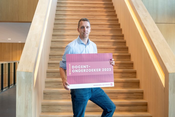 “Veel van onze studenten komen uiteindelijk bij een mkb-bedrijf te werken, dus mijn onderzoek doe ik niet alleen met mijn studenten maar ook voor mijn studenten”, aldus de prijswinnaar. “We doen het met en voor het werkveld. Ik ben uiteraard blij met deze prijs, maar voor mijn gevoel heb ik gewoon mijn ‘werk’ gedaan. En het mooie is dat ik het niet eens als werk zie. Niets wat ik doe – ontwikkelen, doceren, trainen, coachen, met elkaar, voor elkaar – zie ik als werk. Ik doe het allemaal met veel plezier.”