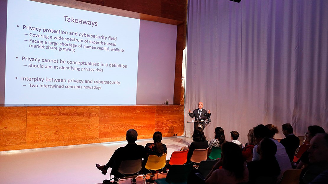 Vooral het proces van systeemontwikkeling krijgt de aandacht. "Hoe ontwerp en realiseer je in de praktijk privacybeschermende en tegelijkertijd veilige informatiesystemen? Om goed te kunnen ontwerpen, moeten we de definitie van privacy vaststellen. Een voorbeeld van dergelijke definities is: privacy wordt geschonden door de openbaarmaking van eerder verborgen informatie. De wortels van privacy liggen in de filosofie (Aristoteles), de wet, ethiek, sociologie en de politiek. "De definitie van privacy is voortdurend in ontwikkeling, van een normatieve tot een formele definitie. Er is niet één definitie te geven. Cybersecurity blijkt iets eenvoudiger te definiëren. Het CNSS [1] omschrijft het als 'bescherming van informatie en de noodzakelijke elementen ervan, inclusief de ICT-systemen die data gebruiken, opslaan en versturen'. Vertrouwelijkheid, integriteit en beschikbaarheid van informatie spelen hierbij grote rollen.
