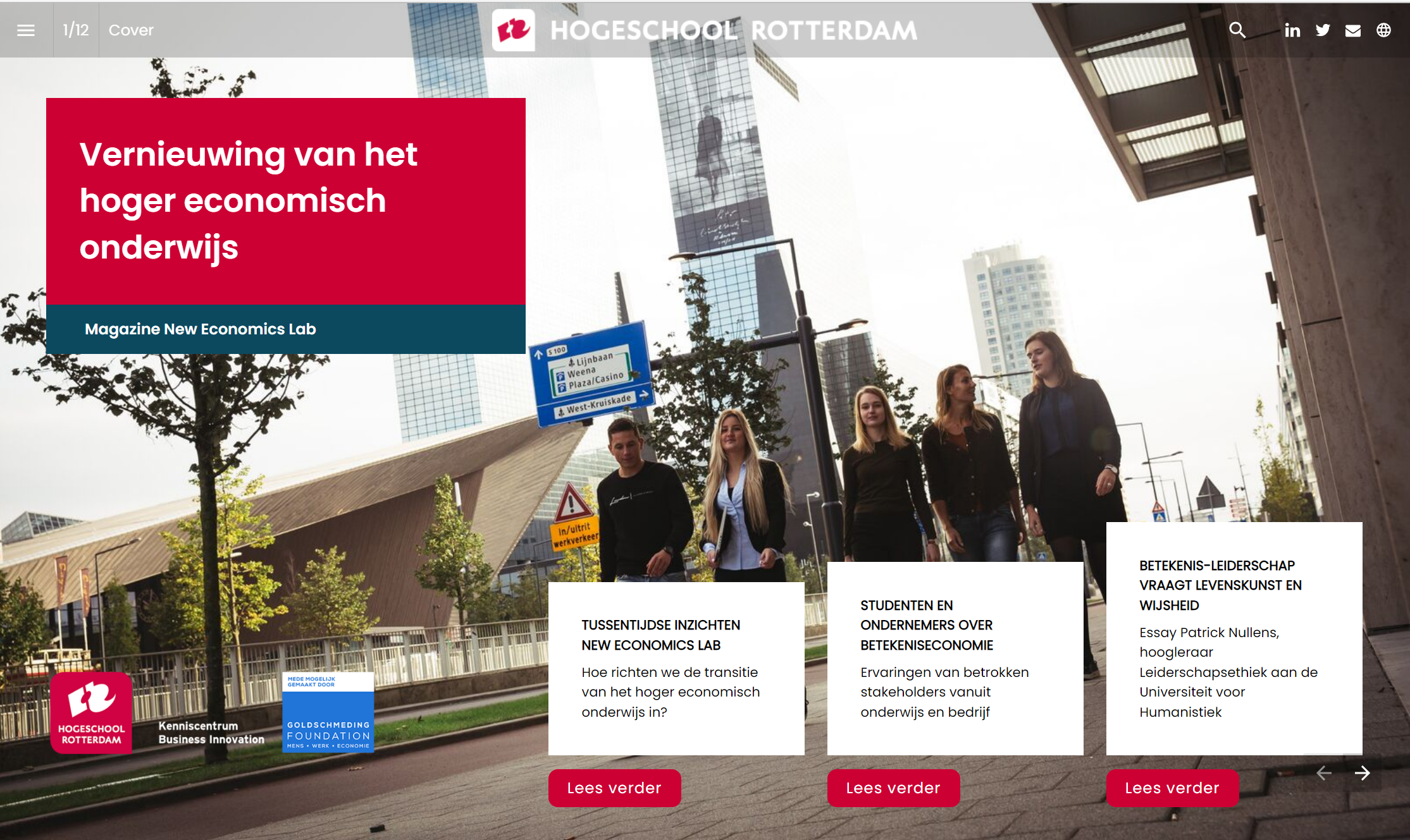 Bij Hogeschool Rotterdam wordt dat nieuwe denken vanuit het lectoraat Betekeniseconomie o.l.v. Kees Klomp verdiept en handen en voeten gegeven. Daar ligt dan ook de coördinatie van ‘New Economics Lab’, waarin docenten, studenten, onderzoekers en ondernemers met elkaar nieuwe inzichten op doen en vertalen naar kennis en kunde voor onderwijscurricula en de praktijk.