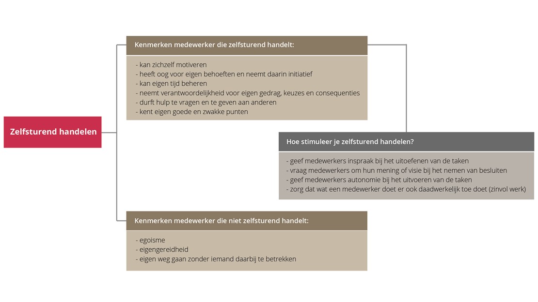Om het zelfsturend vermogen van werknemers te stimuleren dient de manager voornamelijk steun te bieden en duidelijk te zijn. Dit kan een manager doen door bijvoorbeeld de volgende acties te ondernemen: