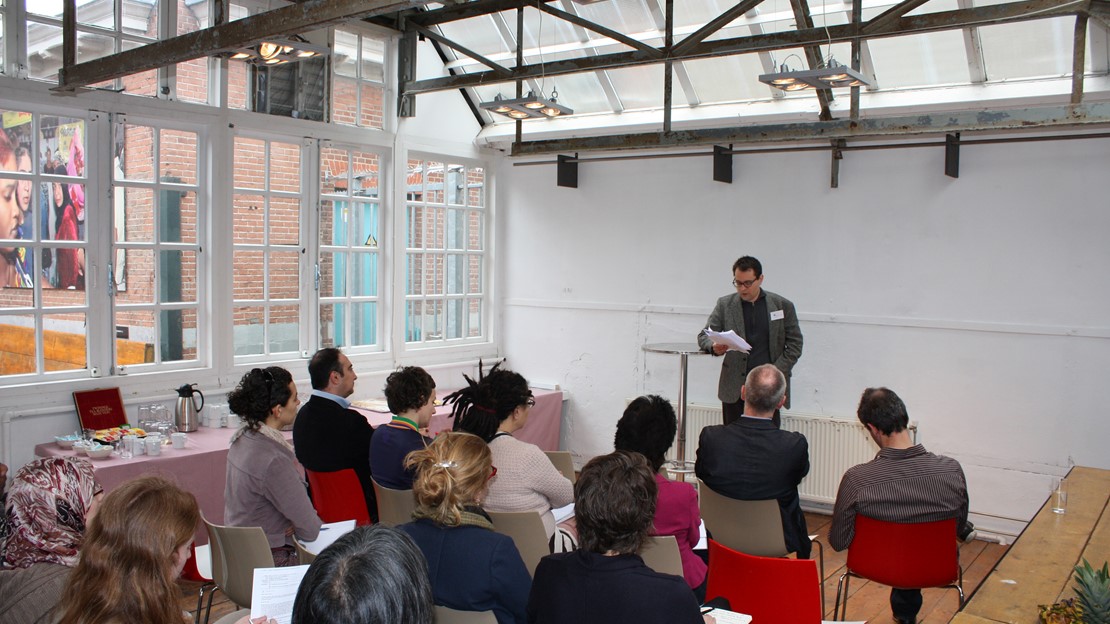 De expert meeting startte met keynotes van Mark Terkessidis (over zijn visie op de omgang met culturele diversiteit in de Rotterdamse cultuursector) en van onze lector Hugo Bongers (over de achtergrond en geschiedenis van culturele diversiteitpolitiek op lokaal en landelijk niveau). Hierna werkten wij met de gasten in kleine groepen aan de volgende vraagstukken: Wat is de hedendaagse definitie van culturele diversiteit? Hoe kunnen curatoren hier goed mee omgaan? Wat is het belang hiervan voor de kunstpraktijk? Hoe gaat de markt hiermee om?