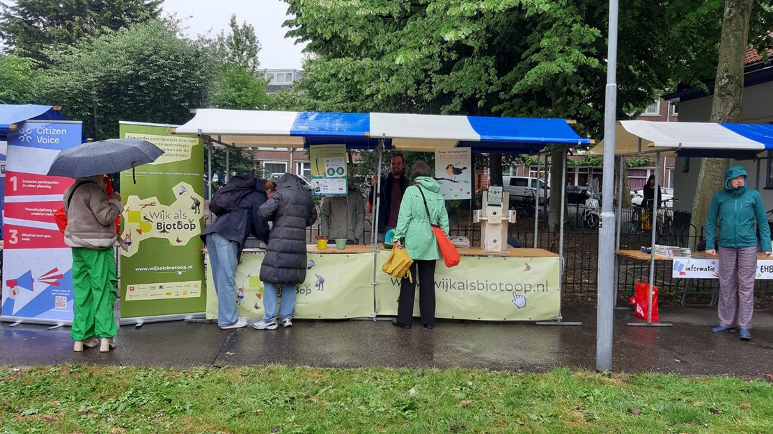 Wij waren aanwezig met een eigen stand om ons initiatief zichtbaar te maken en in gesprek te gaan met bewoners. Op speelse en interactieve manieren lieten we zien hoe we werken aan een wijk waarin natuur, biodiversiteit en sociale samenhang hand in hand gaan.