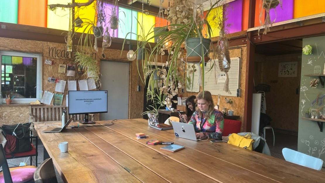 In het tweede deel van het programma ging het over technologie die de natuur kan ondersteunen. Daar verkenden Esterre voorbeelden van biomimicry – ontwerpen die leren van de slimme oplossingen die al in de natuur bestaan. Denk aan gebouwen die ademen als termietenheuvels, of materialen die zichzelf herstellen, net als huid.
