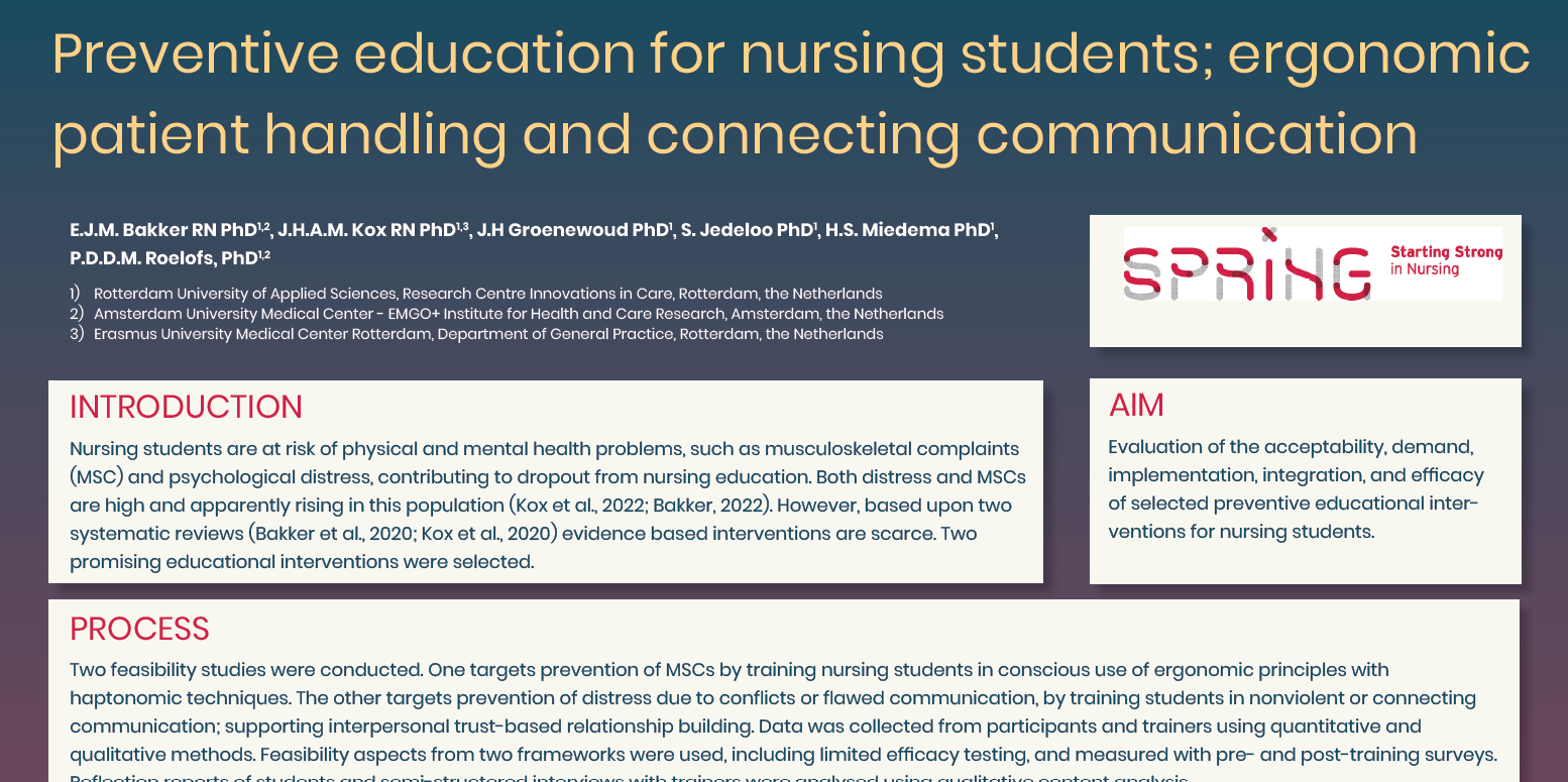 De zorg van morgen vraagt om effectieve communicatie en samenwerking met verschillende zorgprofessionals en patiënten. Hiervoor is een basis van gelijkwaardigheid en vertrouwen cruciaal. Onze studenten ervaren dit echter niet tijdens hun praktijkstages, in interactie met patiënten, praktijkopleiders, en/of andere zorgprofessionals. Dit verhoogt het risico op uitval tijdens en na de opleiding. Wij willen ‘Verbindend Communiceren’ inzetten als evidence-based werkvorm om communicatiecompetenties van studenten van verschillende zorgopleidingen (transdisciplinair) te ontwikkelen en effectievere communicatie en samenwerking te realiseren. Dit draagt bij aan een pedagogisch veilig(er) leerwerkklimaat, patiëntveiligheid en vitaliteit en mentale gezondheid van onze studenten en vermindering van miscommunicatie.
