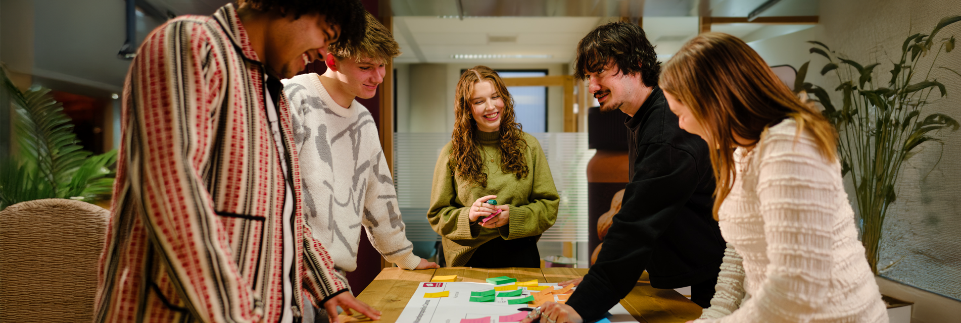 Je werkt veel samen met medestudenten aan realistische cases. Daarnaast heb je minimaal één dag per week vrij — handig voor je bijbaan, sport, zorg, hobby’s of andere dingen.