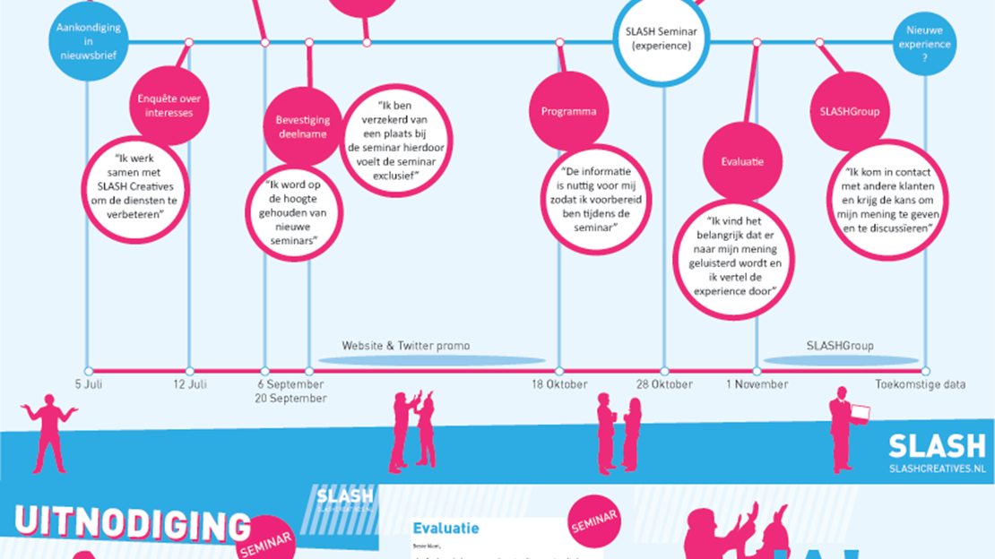 Literatuuronderzoek heeft criteria uitgewezen die klanten een beleving en betekenis meegeven op een congres/seminar. Met dit onderzoek worden de bestaande klantenrelaties versterkt en wordt er kennis aangeboden over nieuwe media en technologie. Door een roadmap komt de klant in aanraking met de merkwaarden van SLASH Creatives en krijgt de experience en het merk meer betekenis.