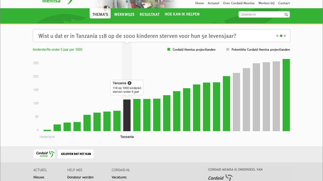 Hoe kan interactieve datavisualisatie ingezet worden om donateurs te werven en te tonen wat Cordaid Memisa doet?