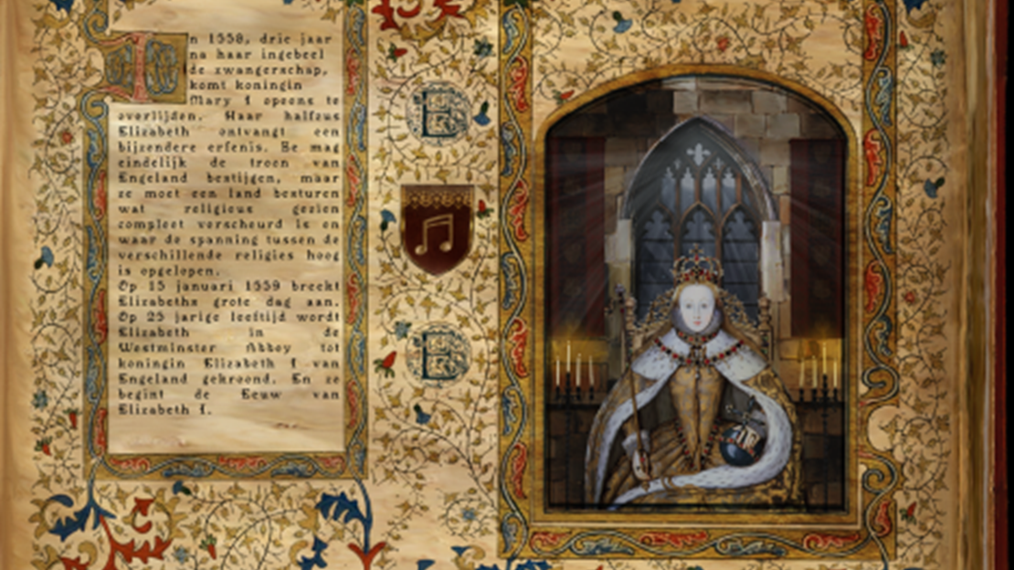 Interactieve App over de geschiedenis van Queen Elizabeth I. Om de drama en macht van deze vrouw uit te beelden met behulp van animerende illustraties en kennis van deze geschiedenis over te dragen op een manier van deze tijd.