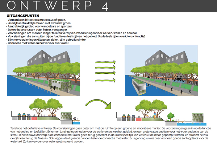 Klimaatverandering vraagt de samenleving om zich aan te passen: klimaatadaptatie. Hoe doe je dat in de stad? Je maakt een klimaatbestendig ontwerp voor een straat in Rotterdam. Met wie moet je allemaal rekening houden om je ontwerp te realiseren? Wat is hun belang en hoe ga je hiermee om? In workshops oefen je hoe je bijeenkomsten met deze stakeholders kunt faciliteren. Je rekent uit hoe jouw maatregel het probleem oplost en hoeveel dit gaat kosten. In colleges leer je hoe je de maatregelen kunt visualiseren. Jouw ontwerp voor de straat presenteer je tijdens een fictieve bewonersavond.