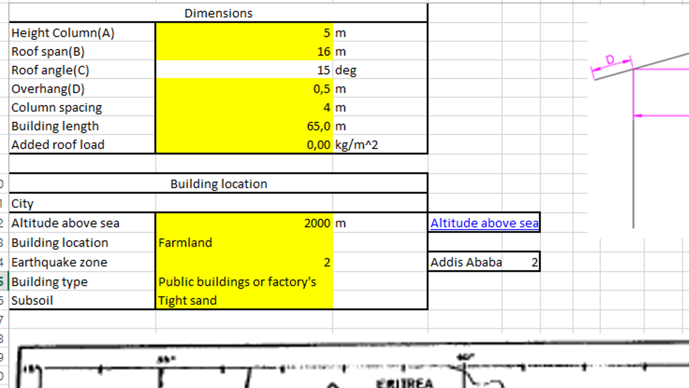 Gerco heeft de berekeningen voor de nieuwe staalprofielen opgezet. Deze maakte Gerco met een programma in Excel. De verkopers kunnen in dat programma de afmetingen van een loods invoeren waarna het ontwerp eruit komt.