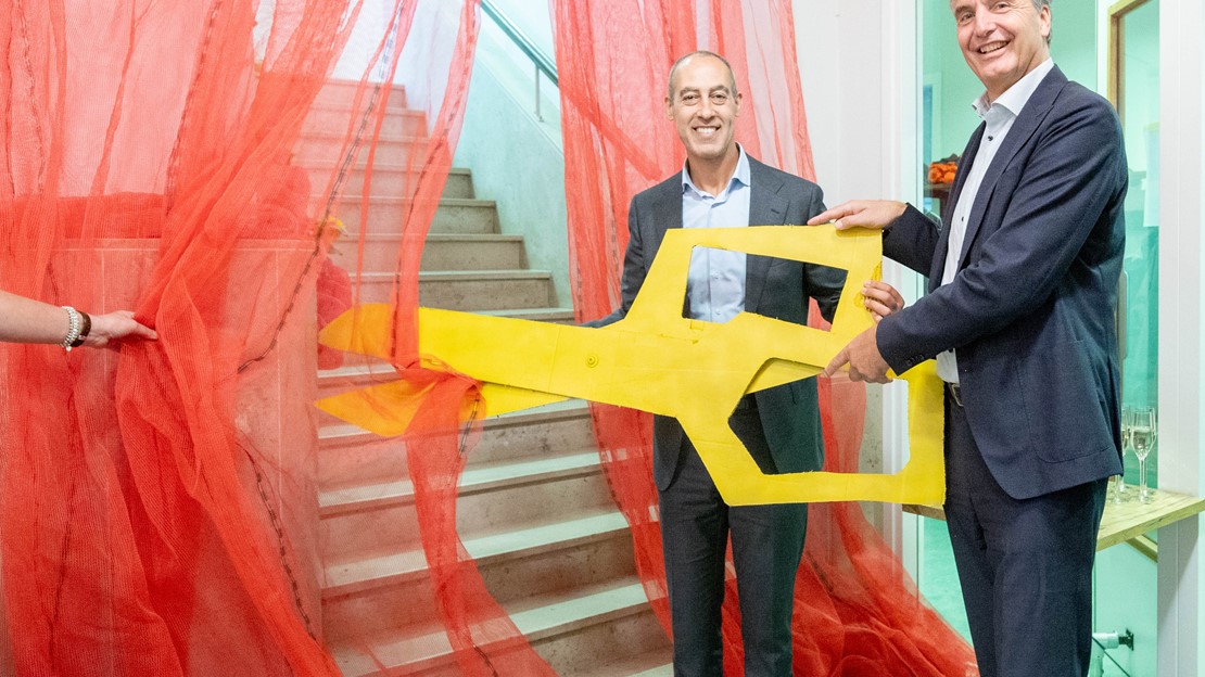 Het voormalig havengebied - zo groot als de binnenstad - mag rustig worden beschouwd als ideaal onderzoeksobject en een nóg betere leeromgeving voor onze studenten. Afgelopen vrijdag vond de officiële opening van deze locatie plaats. Dit in het bijzijn van wethouder Said Kasmi, Hogeschool Rotterdam CvB-lid Wijnand van den Brink (samen op de foto hierboven), Gert-Joost Peek en Hannah Beljaars-Frederiks (beide Hogeschool Rotterdam) en Monica Adams (Keilecollectief).