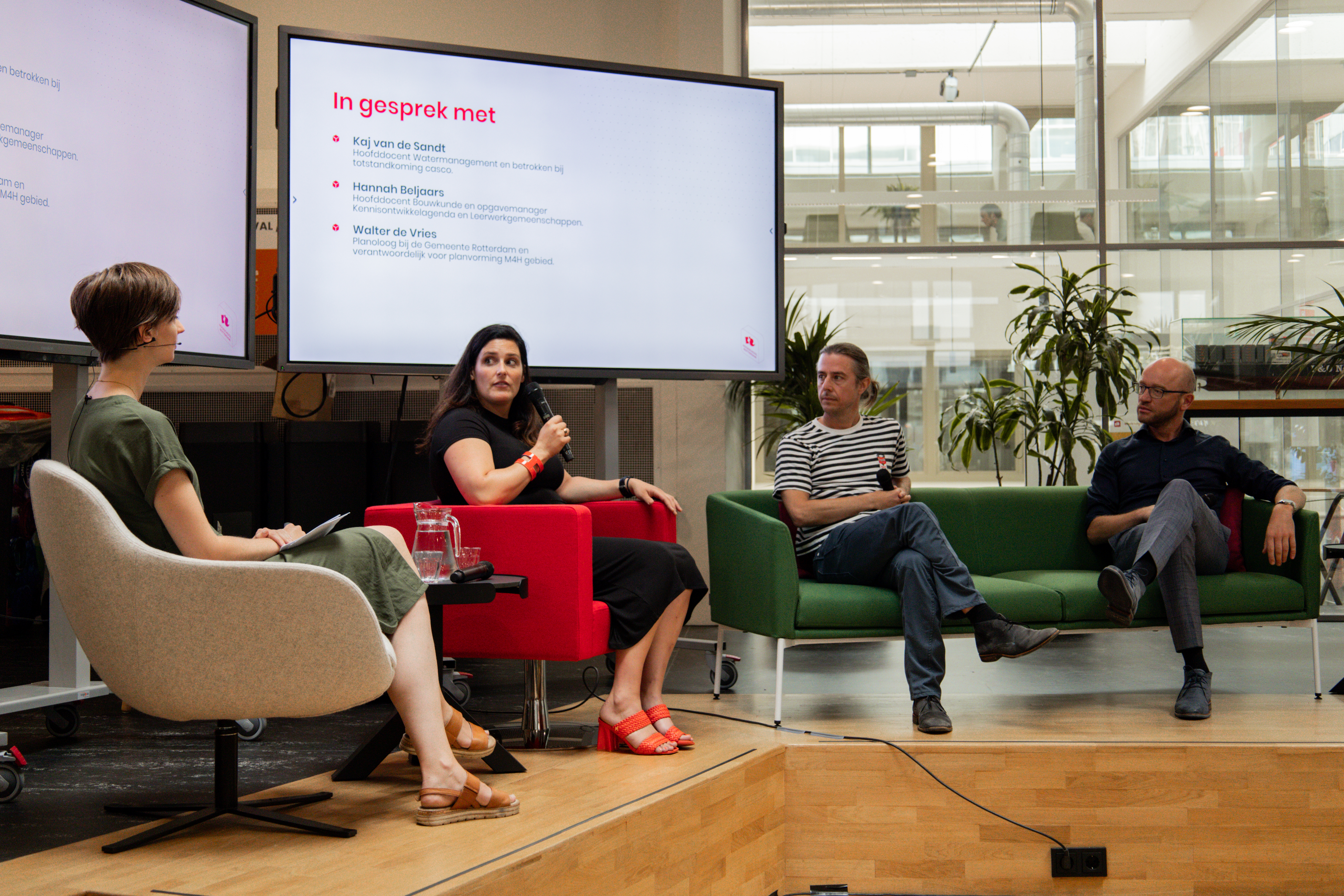 Na het gesprek met Robert, is Lisette in gesprek gegaan met Hannah Beljaars-Frederiks (hoofddocent Bouwkunde en opgavetrekker), Kaj van de Sandt (hoofddocent Watermanagement en betrokken bij het casco) en Walter de Vries (planoloog bij de Gemeente Rotterdam en verantwoordelijk voor de planvorming van het M4H gebied). Zij hebben onder andere gesproken over het belang van opgavegericht onderwijs voor het werkveld, de ervaringen die er nu al zijn en de kansen die dit voor opleidingen met zich meebrengt. Ook is dieper in gegaan op het starten van leerwerkgemeenschappen, hoe het casco hieraan bijdraagt en waarom een kennisontwikkelagenda wordt opgesteld.