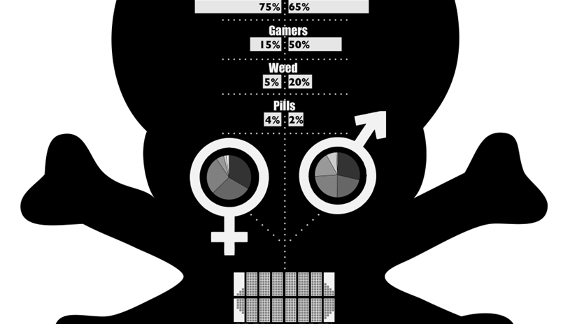 Ik heb er voor gekozen om het over verslaving te doen. Van roken tot koffie. Van hardcore gamers tot XTC. Ik maak de vergelijking tussen dames en heren binnen mijn social network.