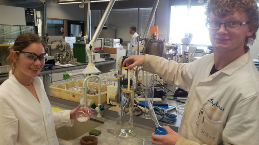 In het Universitair Medisch Centrum in Groningen (UMCG) bij de Bio-Inspired Synthetic Material Science groep wordt onderzoek gedaan naar bio-synthetische materialen voor medische toepassingen. Een voorbeeld hiervan zijn de microgels. Deze microstructuren bestaan uit een dispersie van opgevouwen polymeerketens in water. Aan de studenten van chemie is gevraagd om mee te helpen een aantal variaties van polymeren te synthetiseren in het laboratorium.