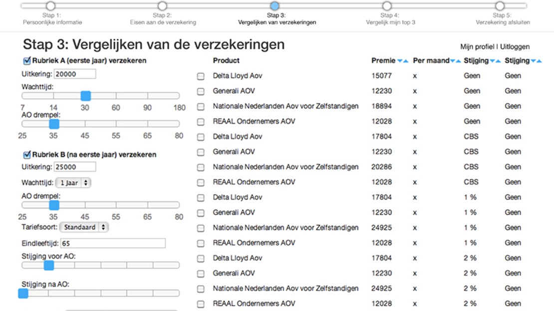 Minor: Concept Development De opdracht was om uit te zoeken hoe er een zo hoog mogelijke conversie gegenereerd kon worden op een vergelijkingssite van arbeidsongeschiktheidsverzekeringen.