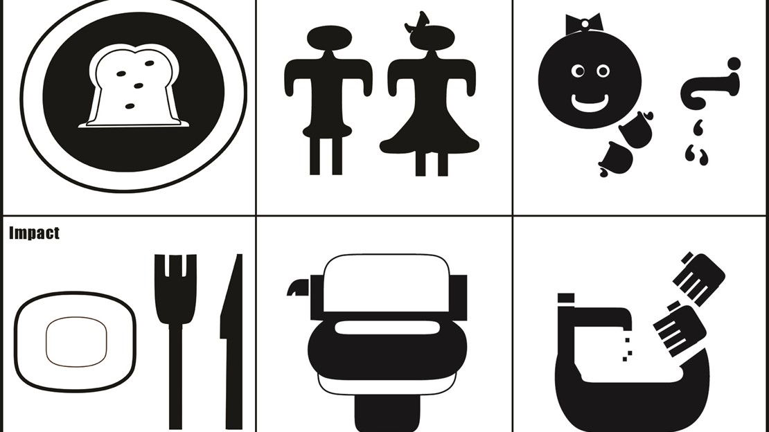 We hebben de opdracht gekregen om 3 pictogrammen voor een kinderdagverblijf en 3 voor een verzorgingstehuis te ontwerpen. De bedoeling was dat je het pictogram uit een font moest bouwen door de kenmerkende vormen uit de font te halen.