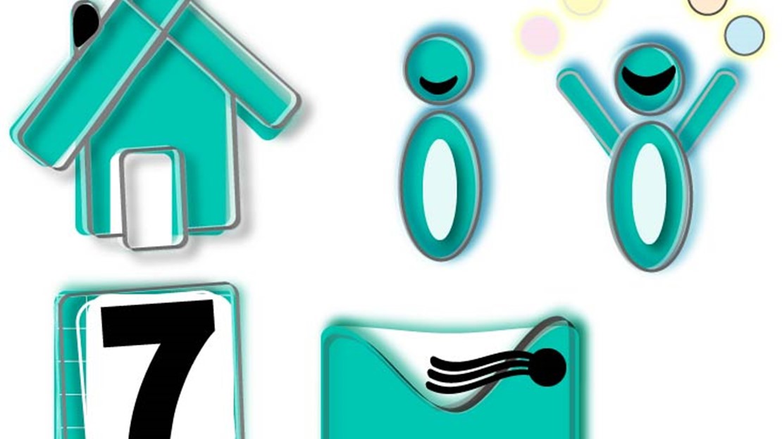 Een reeks pictogrammen gebaseerd op onderzoek, in context voor een 55 plus site.