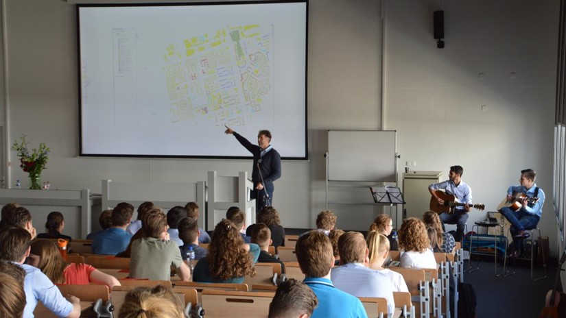 De opleiding liet zichzelf zien in drie afsluitende themasessies gericht op plastic soup, multifunctionele daken en klimaatbestendig waterbeheer. Ook in deze sessies was er volop ruimte om ideeën over deze onderwerpen uit te wisselen tussen studenten, alumni en het werkveld. Na een dag vol kennis boosten, netwerk vergroten en mensen ontmoeten, was het tijd voor een borrel met muzikale omlijsting van studenten. Deze dag smaakte naar meer en we kijken uit naar het volgende symposium.