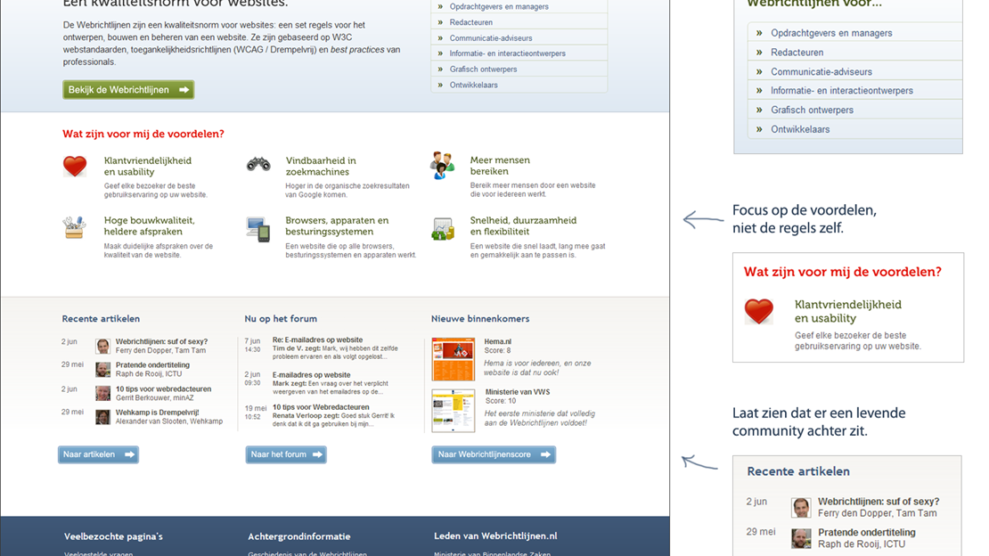 Ik heb uitgebreid onderzoek gedaan naar de verschillende doelgroepen van de Webrichtlijnen. Vervolgens heb ik voor de verschillende doelgroepen de optimale user experience bepaald. Op basis daarvan heb ik een nieuwe website ontworpen.
