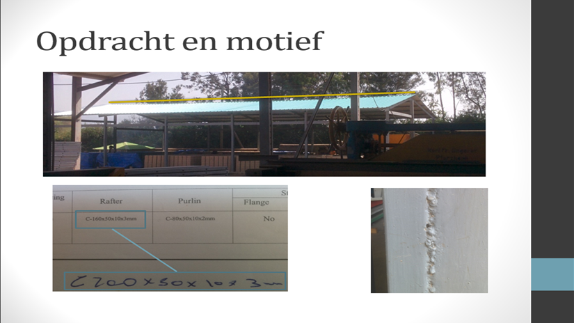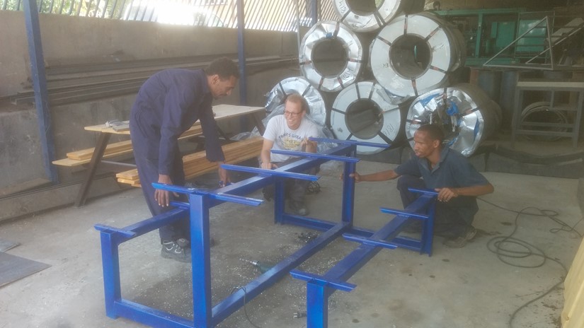 De Ethiopian Steel Profile and Building Plc. (ESPBC) is een staalwalserij in Debre Zeit waar van rollen staal profielen en dakplaten gefabriceerd worden. Van deze halffabricaten worden loodsen gemaakt. Omdat er niet altijd vakkundig in elkaar gelast kan worden, wil het bedrijf loodsen aanbieden die met boutverbindingen in elkaar gezet kunnen worden. Ook wilde de ESPBC de berekeningen beter laten doen. Als afstudeeropdracht maakte Gerco de Bakker een ontwerp voor de loodsen die verkocht gaan worden en daar waren ook berekeningen voor nodig.