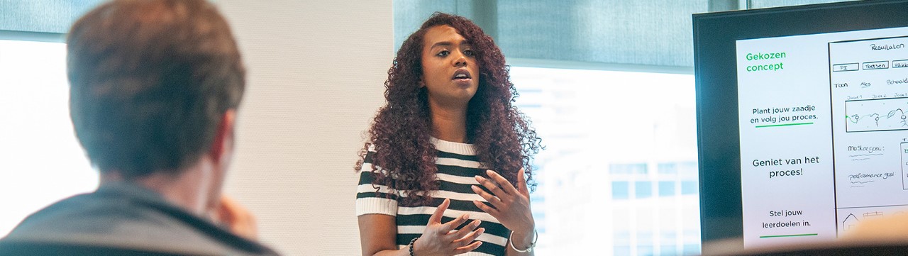 "Ik ben van mezelf iemand die graag anderen coacht, ook studenten. Als in een groep bepaalde mensen niet gemotiveerd zijn, probeer ik hen te helpen. Kom op, je kunt het! Misschien kun je dit of dat proberen? Dat motiveren is een passie van me. Daarom ben ik zo blij met mijn afstudeeronderzoek bij StudieNet. Ik kijk hoe Hogeschool Rotterdam studenten kan faciliteren bij het ontdekken van hun persoonlijke kwaliteiten, zodat ze hun professionele identiteit bewust(er) kunnen ontwikkelen. Ze zien nu vooral hun cijfers, punt. Ik wil een tool ontwikkelen waarmee studenten hun persoonlijke groei kunnen bekijken. Stel dat je in het eerste jaar presenteren voor de klas spannend en eng vindt. Dan wil ik inzicht creëren in wat iemand dan spannend en eng vindt en wat 'ie kan doen om daarin te groeien. Dan kun je later terugkijken en denken: oh ja, toen deed ik zus en zo, waardoor ik me meer comfortabel voel tijdens een presentatie. Er wordt een zaadje gepland en dat groeit uit tot een plant."