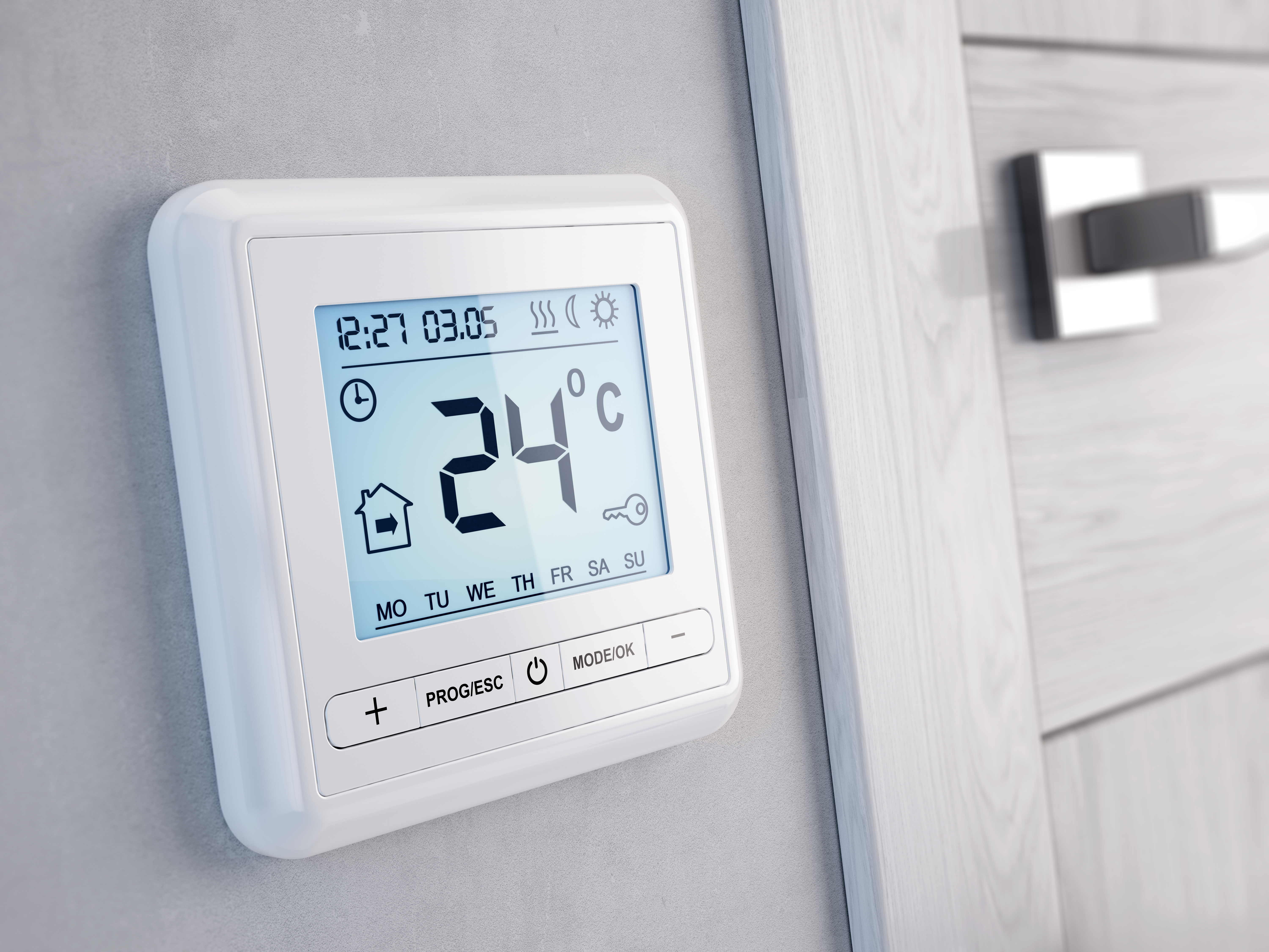 De thermostaat meet de temperatuur, en als deze lager is dan de ingestelde waarde, wordt de verwarming ingeschakeld. Als de gemeten temperatuur hoger is, wordt de verwarming weer uitgeschakeld. - Deze regeling heet een aan-uit-regeling en wordt vaak gebruikt bij systemen met een looptijd.